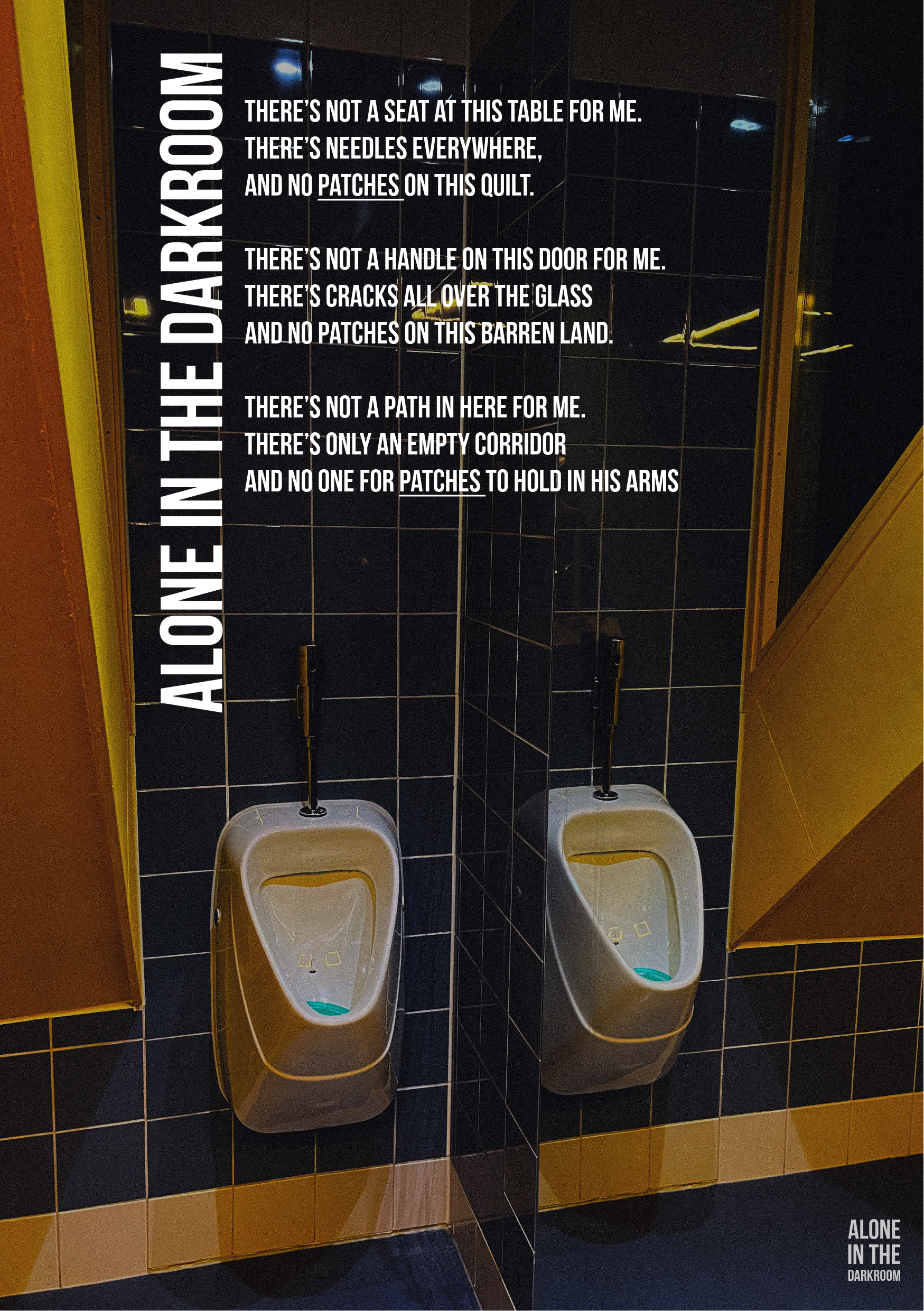 Alone in the Darkroom is a 20-page collection of poems and photographs exploring the private spiral of rejection, inadequacy, shame, and anger.